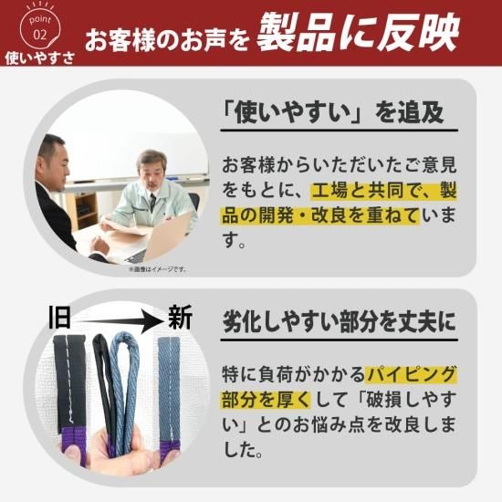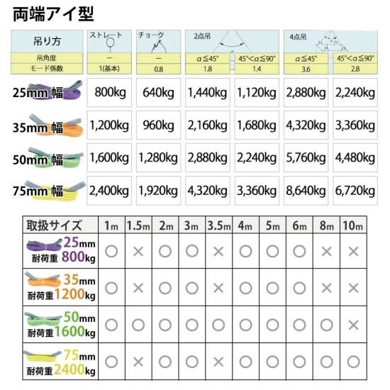 ※2021年度改良版 ●国際基準CE,TVU,GS規格品 ●最大使用荷重(kg):800(ストレート吊の場合) ●全長(m):1 ●ベルト幅(mm):25 ●両端アイ形 ●材質:ポリエステル原糸100% ●安全係数6 ●PL(生産物弁償責任)保険加入商品 ●製造国:中国 用途: ●鋼材:メッキ・塗装などの表面加工鋼材・鋼管・鋼板などの運搬。 ●機械:自動車および自動車部品・精密機械の運搬。 注意事項: ●下記各最大使用荷重を超える吊り荷は絶対に吊らないでください。 ●繊維製品ですので寸法に多少の誤差があります。ご了承ください。 ●荷物の鋭利な角や摩擦によってベルトスリングなどの繊維スリングを傷つける恐れがある箇所には、必ずコーナーパットなどの当て物を使用してください。 ●当て物を使用していても荷物の横滑りや周囲の壁や物への接触、加圧などによりスリングが損傷および切断する可能性がありますので作業環境には十分に注意してご使用ください。 |