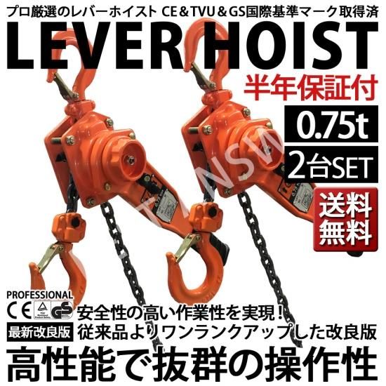 レバーホイスト 0.75t 2台セット チェーンブロック チェーンホイスト レバー式 ブロック ガチャガチャ がっちゃ 工具 吊上げ 吊り まとめて 大量 lh-vp075-2p