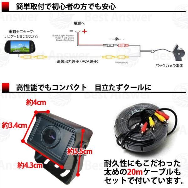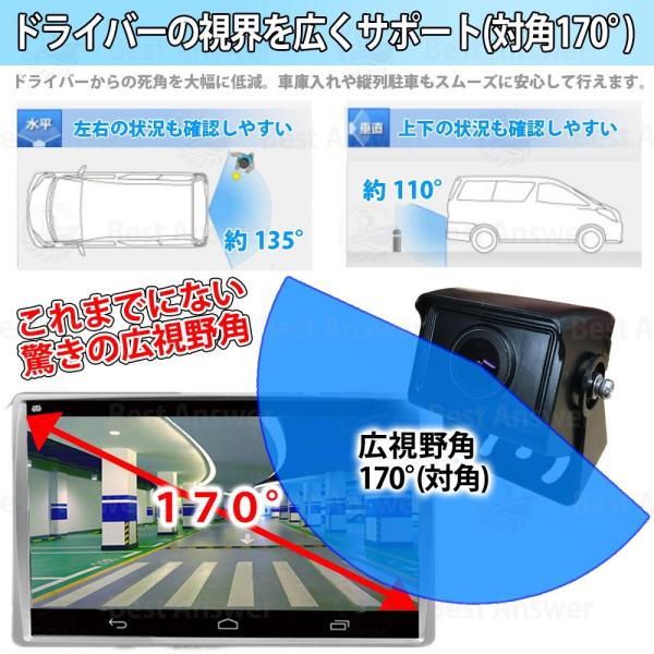 バックカメラ トラック用 防水 超広角 170度 拡光6層レンズ 暗視機能 12/24V対応 car-042