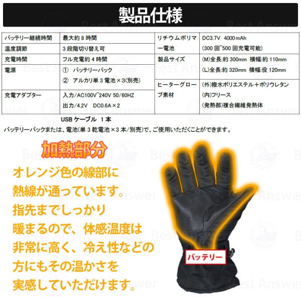 ホットグローブ ヒート 手袋 あったか 充電 電池 両対応 通勤 アウトドア 釣り ウォーキング aut-024