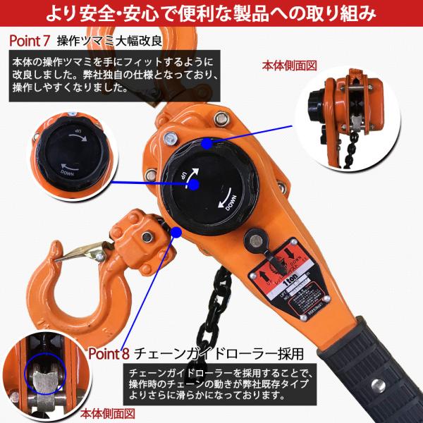 レバーホイスト 1.0t【軽量モデル・コンパクト・高品質・ISO基準グレード80】 (JD-1) lh-jd100