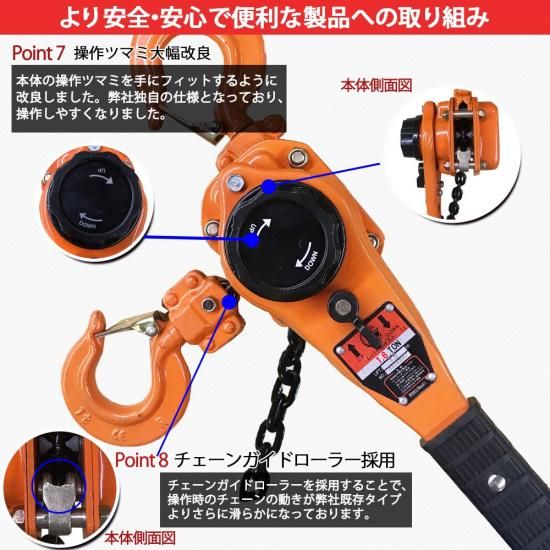 レバーホイスト 1.6t 1台 1600kg チェーン ローラー チェーンブロック レバー式ブロック レバー 荷締機 ブロック ガッチャ 滑車 ホイスト チェーン ホイスト 固定 工具 lh-jd160