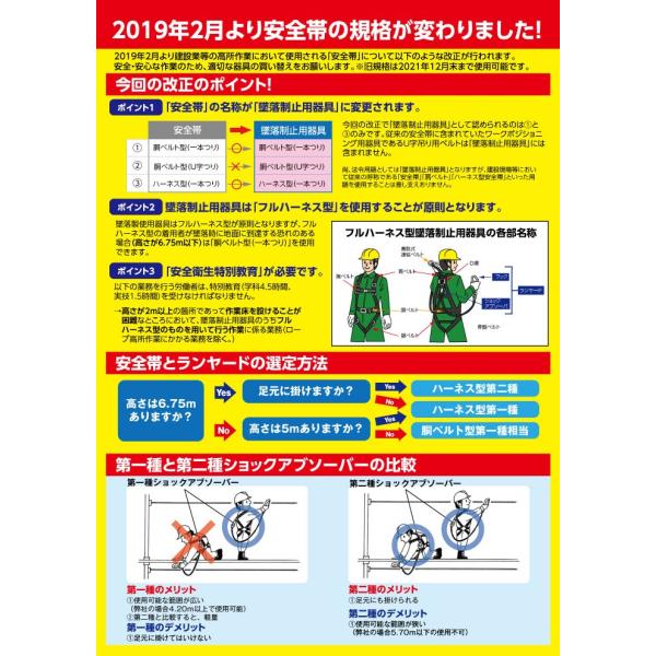 商品紹介: ● 厚生労働省「墜落制止用器具の規格」適合品 ● JIS T8165:2018 墜落制止用器具 適合 ● 一本吊り専用 ● ランヤード種別:タイプ1 ● 胴ベルトなしタイプ ● サイズ:適応目安身長:165〜185cm ● 色:ハーネス&ランヤード:黒/反射シルバーライン ● 腿バックル:ワンタッチ トリプルロック式 ● ベルト幅(mm):45 ● ランヤードフック種類(構造物側):剣アルミフック/自在環付 ● 胸ベルト幅(mm):38 ● 最大使用可能質量(kg):100 ● フック口開き(mm):65 ● ランヤード色:黒/反射シルバーライン ※本製品は受注生産となります。納期目安は受注より約2〜3ヶ月となります。メーカーに納期を確認し次第ご連絡差し上げます。 ※ご注文いただいた後のキャンセルや変更はお受け出来かねます。あらかじめご了承くださいませ。 ※サイズ感や使用感、製品の色合いなどによる交換、返品はお受けできません。 注意※購入前に必ずご確認ください!! 本製品はメーカー直送品のため、当店出荷商品との同じカートでの同梱注文はお受けできません。また、ご注文をいただいてから3営業日以内にメーカーより発送となります。お届け日のご指定はお受け出来かねます。また、当店出荷商品と一緒に注文をいただいた際は商品の到着が異なること、あらかじめご了承ください。 当店では、5,500円(税込み)以上のご注文で送料無料にて発送を取らせていただいておりますが、メーカー直送品と同梱注文いただいた場合、メーカー直送品を除いた当店出荷商品の合計金額で計算させていただきます。あらかじめご了承くださいませ。 メーカー直送品のため、代引決済、後払い決済はご利用いただけません。決済方法はクレジット決済、銀行振込、コンビニ決済、キャリア決済をご利用いただきますようお願いいたします。 メーカー直送品のため、不良品以外の交換は対応できかねます。使用感やサイズ感、色合いなどの違いについても対象外となります。また、製品仕様は予告なく変更になる場合がございます。あらかじめご了承くださいませ。 |