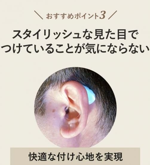 耳穴をふさがないかけtelくんはハウリングの苦痛が抑えられ快適にお過ごしいただけます。