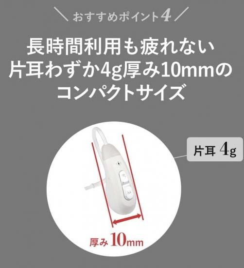 軽量コンパクトデザインでつけていることが気になりません。前から見ても、横からも耳の背部に本体が隠れる仕様のため、目立ちません。
