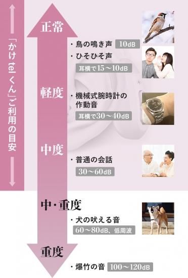 “かけtelくん”は軽、中度の聴力喪失の方に向けの商品です。以下の音量目安を参考にご検討ください。