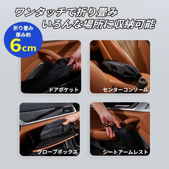 ・折り畳み傘と同等のサイズなので、付属の収納ケースに入れてドアポケットなどに収納できます。
