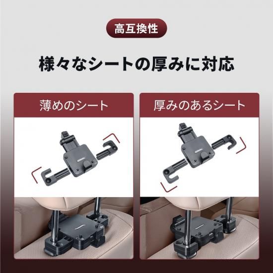 ヘッドレストのポールが付いている車両に対応できます。 ※一体化したシートヘッドレストの場合は取り付けできません。 対応シャフト間隔11cm-18cm 。 伸縮機能付きでほとんどの車に装着可能です。 長時間のドライブ・車中泊などに最適。 |