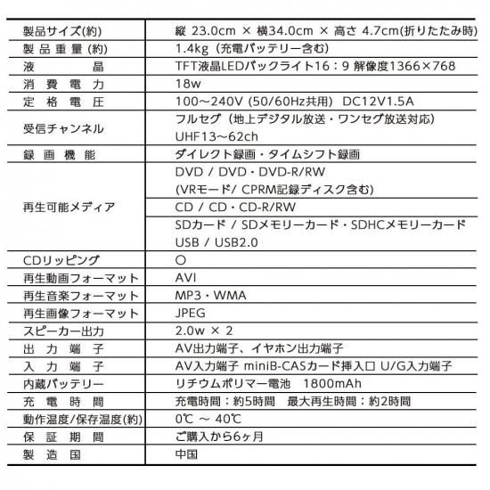 ※地上デジタル放送のB-CASカードが付属されていますので、フルセグ放送を受信することが出来ます。