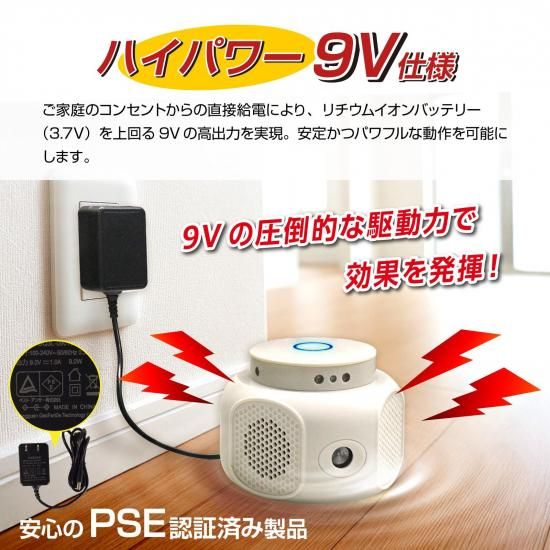 6. コンセント給電だからハイパワー9V仕様で圧倒的な駆動力で撃退効果を発揮!