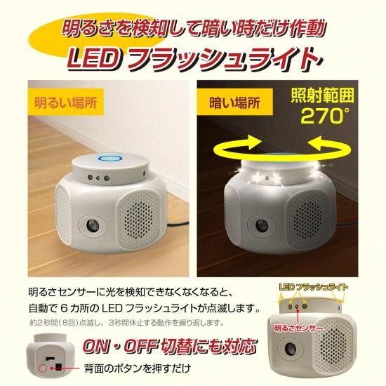 4.明るさを検知して暗い時だけLEDフラッシュライト作動で効果アップ。