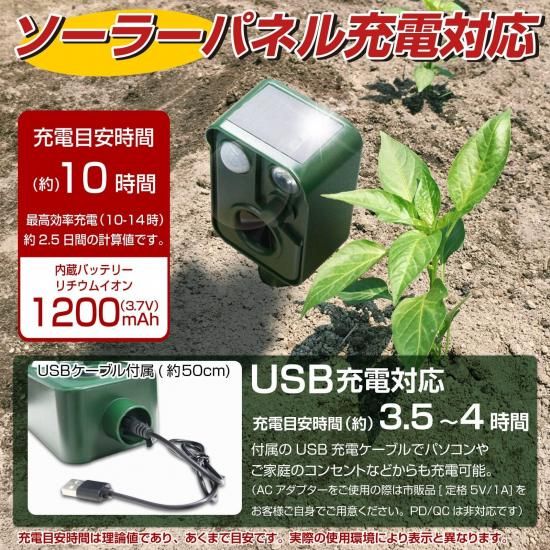野良猫 撃退 猫よけ 動物撃退器 猫 超音波 センサー カラスよけ 対策 光 音 ソーラー式 USB充電 野良猫対策 パネル 防滴 犬 鳥よけ 庭 撃退機 カラス aut-069-2p