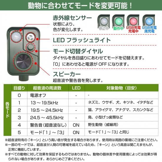 4.様々の侵入動物に対応可能の複数モードが備えられています。