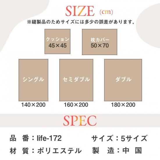 | 商品コード | life-172(毛布)、life-173(クッションカバー、枕カバー) |